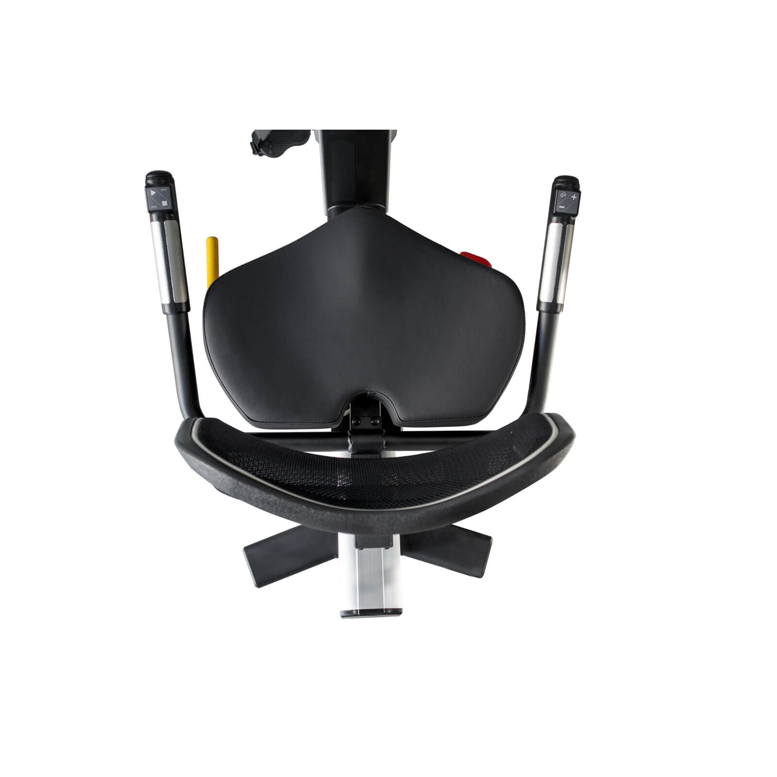 Wygodne, ergonomiczne siodełko z profilowanym oparciem z przewiewnej siatki zapewni optymalne warunki i wygodny trening nawet na najdłuższej trasie. Uchwyty po obu stronach siedziska wyposażone są w sensory do pomiaru tętna i przyciski szybkiego wyboru.