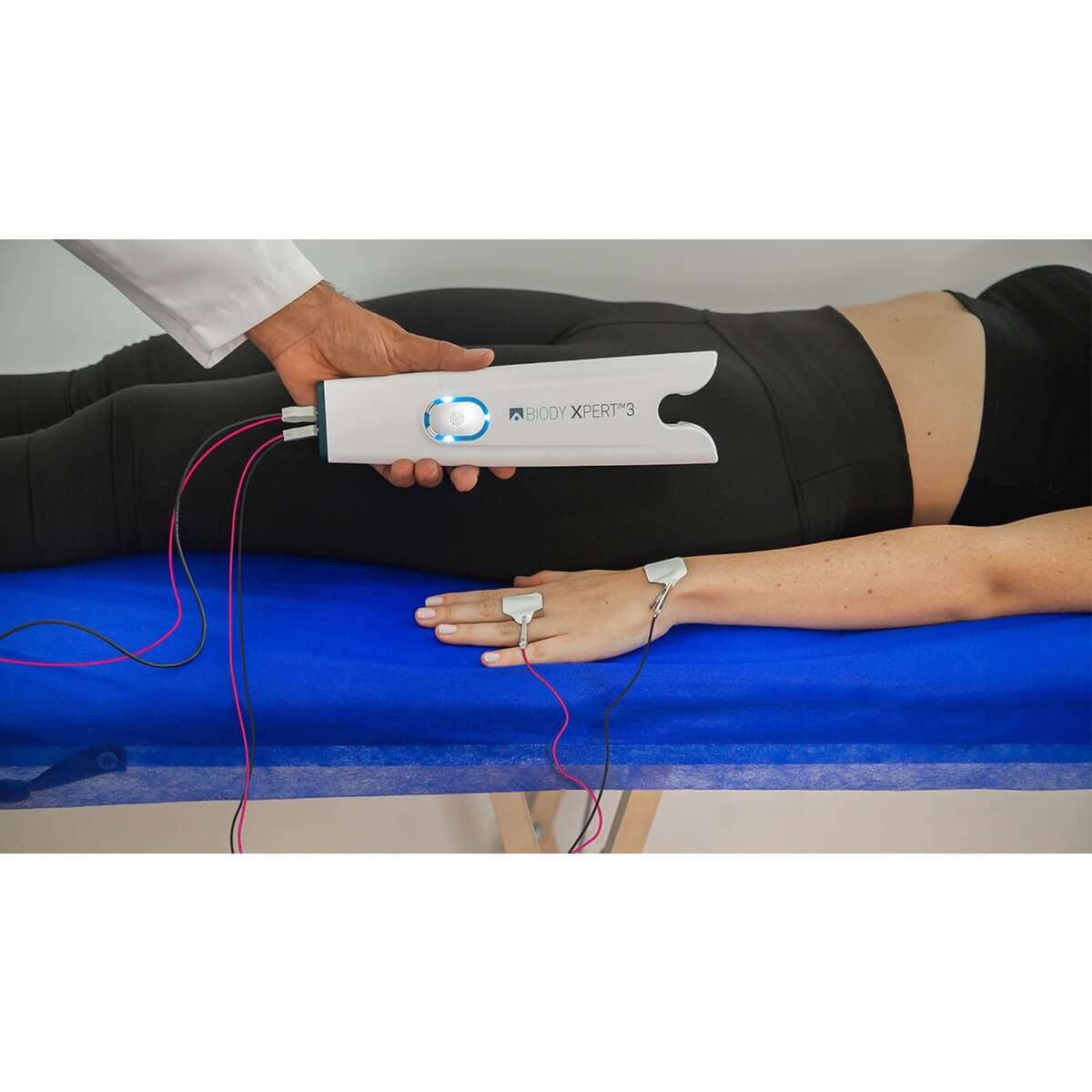 - Nowoczesny analizator składu ciała przeznaczony do użytku w placówkach medycznych. Pomiar może być wykonany w pozycji siedzącej z wykorzystaniem 4 stałych elektrod wbudowanych lub – w przypadku pacjentów z ograniczoną mobilnością – w pozycji leżącej za pomocą przewodów i jednorazowych elektrod samoprzylepnych.