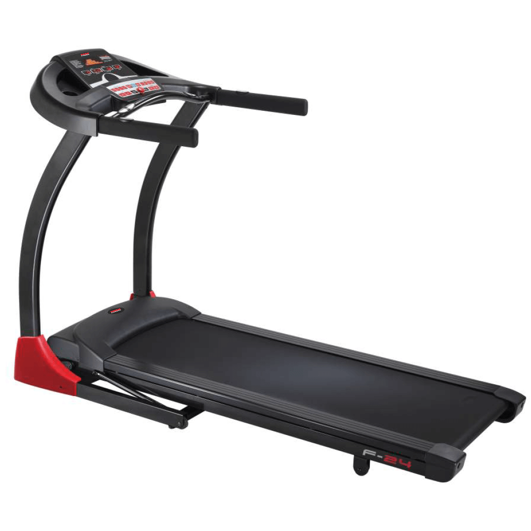 Domowa, składana bieżnia elektryczna F24 to najnowszy model w ofercie marki York Fitness. Wyposażono ją w silnik o mocy 2,5 KM, który pozwala prędkość od 1 do 20 km/h. Istnieje również możliwość elektronicznej regulacji nachylenia w skali 0 do 15%. Zarówno wzniosem jak i prędkością można sterować poprzez przyciski szybkiego wyboru (4 prędkości i 4 pochylenia) lub tradycyjne przyciski, które umieszczono na pulpicie komputera. Na uchwycie przed panelem znajdują się sensory dotykowe, które służą do pomiaru tętna. Bieżnia posiada wejście MP3 i głośniki, dzięki którym można w trakcie treningu słuchać ulubionej muzyki. W zasięgu ręki znajdują się miejsca na bidon. Nośność urządzenia to 135 kg.