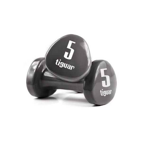Hantle 2x5kg Tiguar pokryte są winylem, co zabezpiecza je przed chłonięciem wilgoci i zabrudzeniami. Mają ergonomiczny kształt ułatwiający trzymanie ich w dłoni, zaś wyraźne oznakowania pozwalają na szybą identyfikację. Są łatwe w czyszczeniu. Przeznaczone do treningu całego ciała, w szczególności zaś to treningu wzmacniającego i kształtującego ramiona i mięśnie obręczy barkowej.